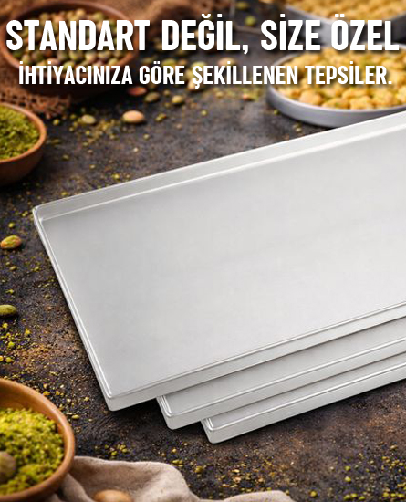 Baklava tepsisi, poğaça tepsisi, kullan at ve tek kullanımlık tepsi modelleri hakkında detaylı bilgiler. Profesyonel mutfaklar için doğru tepsi seçimi rehberi.